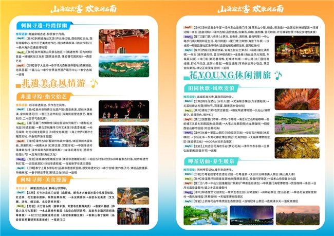 活动现场同步发布了6条精心设计的“闽西南入境联程旅游精品线路”,精准契合240小时过境免签时限,覆盖“山海世遗、非遗美食、花YOUNG休闲”三大主题,为境外游客提供了一站式、高品质的闽西南旅行攻略。